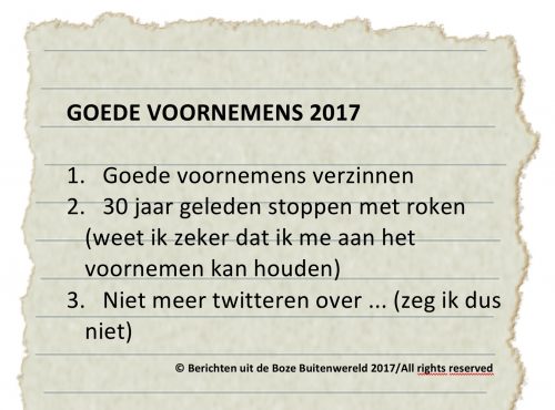 Natuurlijk hebben wij óók goede voornemens. Gedachten uit de Broze Binnenwereld van Berichten uit de Boze Buitenwereld.